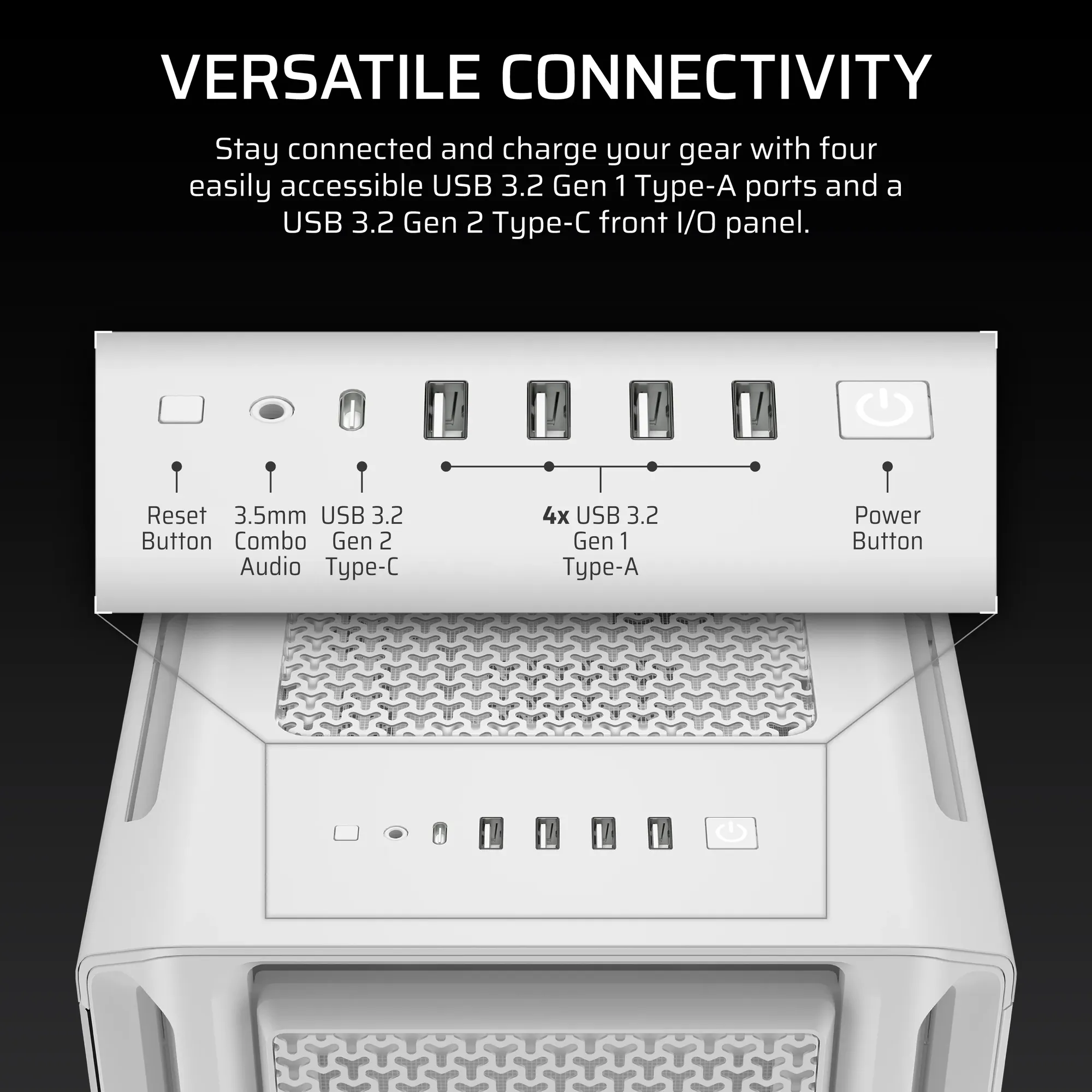 3000D RGB AIRFLOW White Mid-Tower PC Case; 2x 3.5'' | 2x 2.5'' Drive Bays; Up to 360mm Radiator compatible; 3x 120mm fan incl